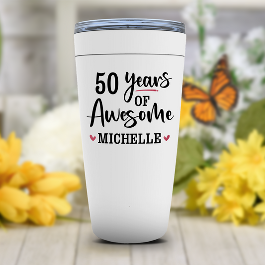 50th Birthday Gift for Women Funny - 50 Years of Awesome Personalized Name Tumbler
