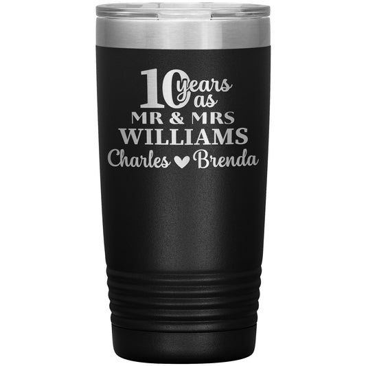 10th Anniversary, 10 Years as Mr. & Mrs. Couple Tumbler