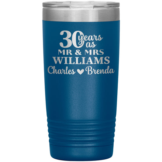 30th Anniversary Gift, 30 Years as Mr. & Mrs. Couple Tumbler