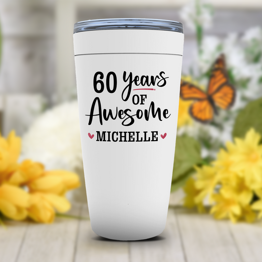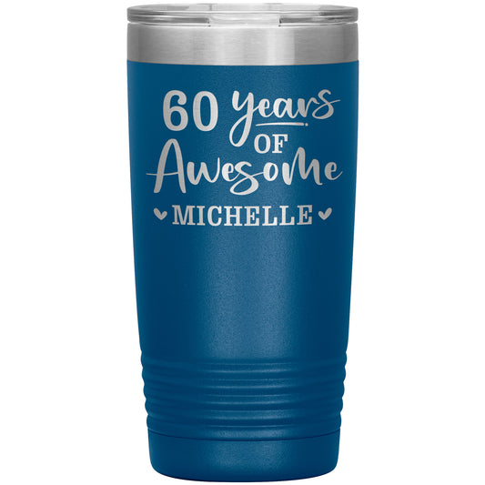 60th Birthday Gift for Women - 60 Years of Awesome Tumbler - Personalized Custom Name Cup