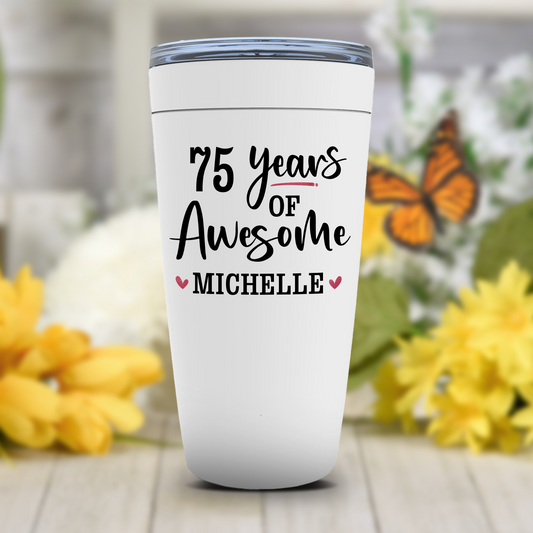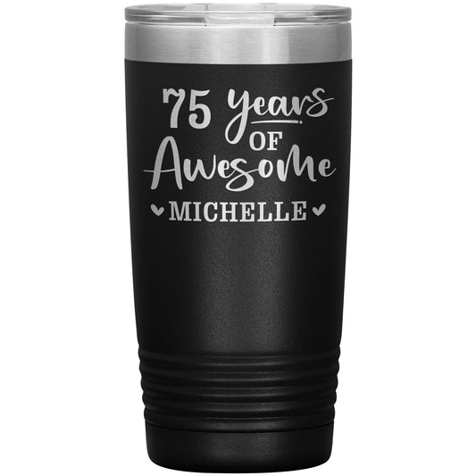 75 Years of Awesome Custom Name Tumbler - 75th Birthday Gift for Mom - Born in 1947 Bday