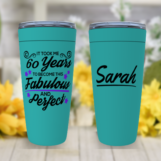 60th Birthday Gifts for Women Personalized - Gift for 60 Year Old Woman - 60 and Fabulous Tumbler