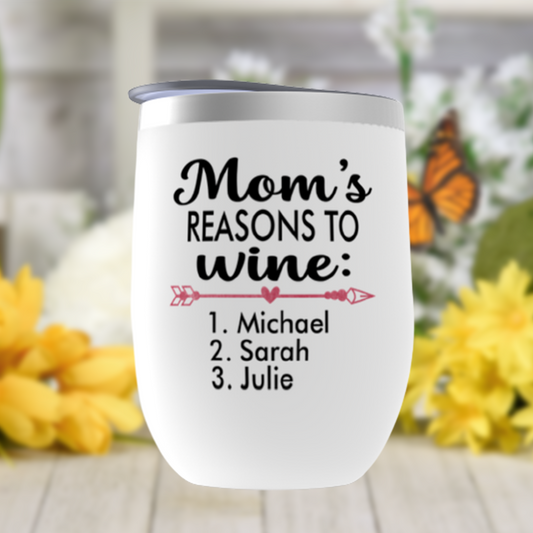 Mom's Reasons To Wine Personalized Tumbler - Mother's Day Cup With Kids Names