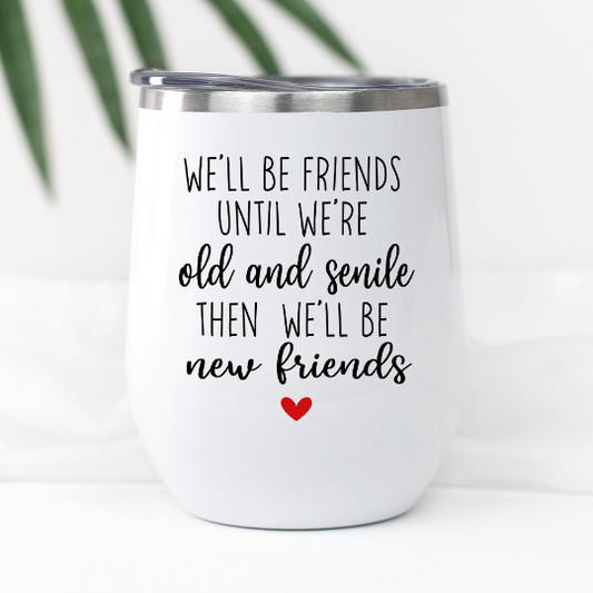 We'll Be Friends Until We're Old And Senile Wine Tumbler - Personalized Best Friend Gifts For Women - Funny Bff Gift