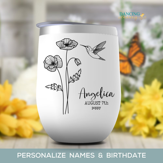 Birth Month Flower Wine Tumbler Birthday Gift for Women Personalized Birth Floral Cup