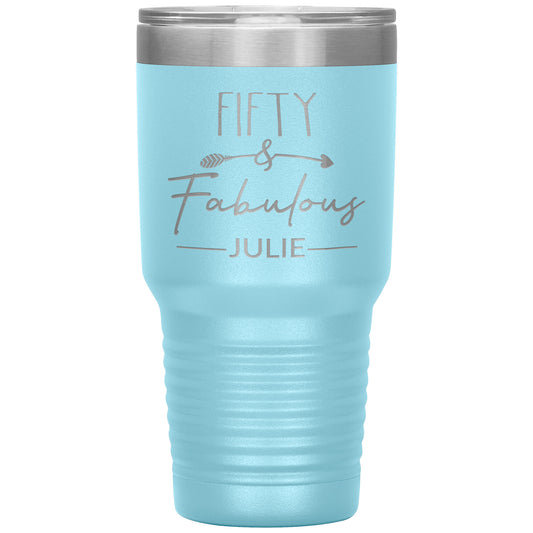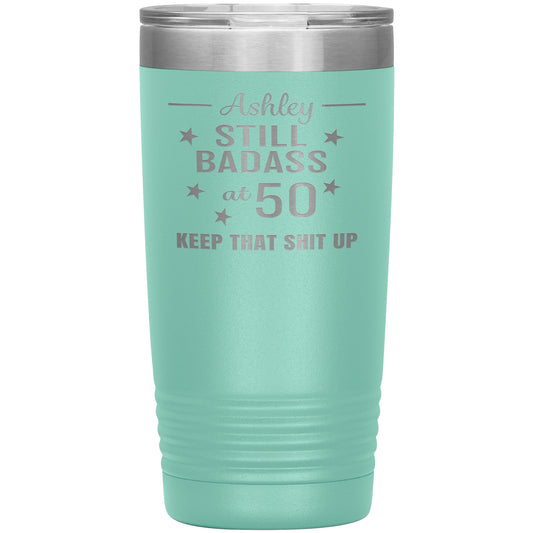 50th Birthday Gift for Women Funny - 50 Years of Awesome Personalized Name Tumbler
