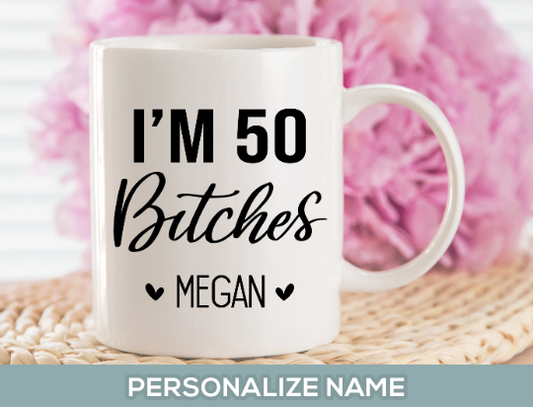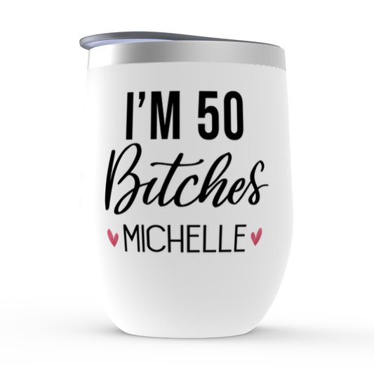 I'm 50 Bitches Party Wine Tumbler - 50th Birthday Gift For Women - 50 Year Old Personalized Cup