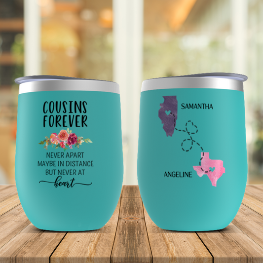 Cousins Forever State to State Wine Tumbler - Personalized Long Distance Cousin Gifts