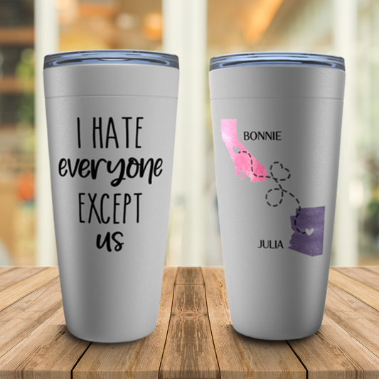 I Hate Everyone Except Us Tumbler - Personalized Long Distance Friendship Gift - Sister State To State Cup