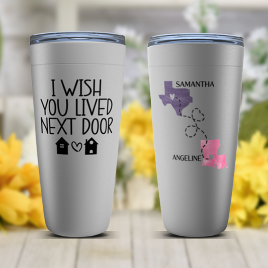 I Wish You Lived Next Door Personalized Tumbler - Long Distance Friend Gift - Custom Name And State Cup