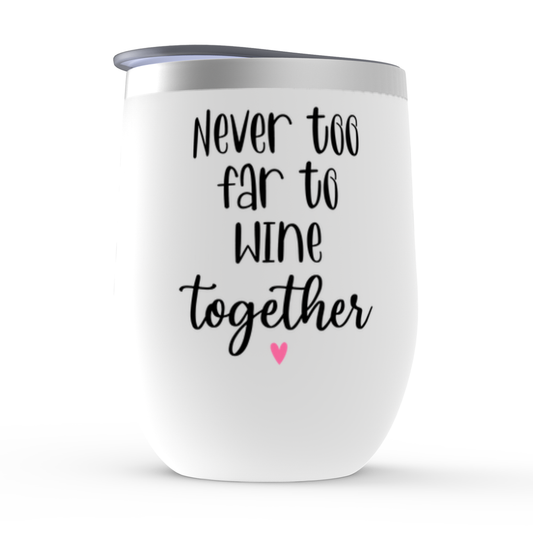Never Too Far To Wine Together Wine Tumbler - Long Distance BFF Gift - Personalized State To State Cup