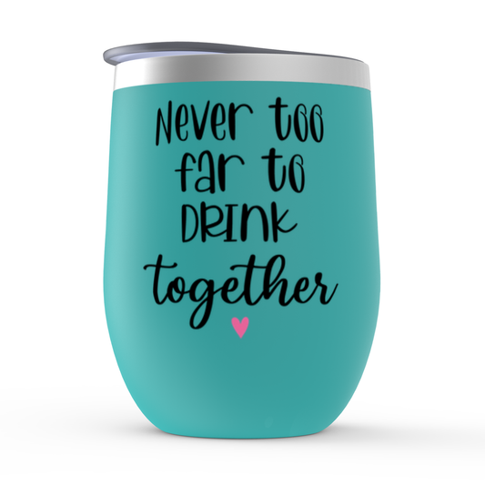 Never Too Far To Drink Together Wine Tumbler - Long Distance Friendship Gift - Custom Name And State To State Cup