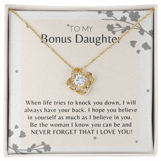 To My Bonus Daughter Never Forget that I Love You Love Knot Necklace