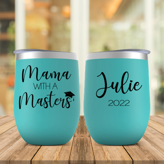 Mama With A Masters Personalized Wine Tumbler - Master's Degree Graduation Gift For Women - Custom Name Cup