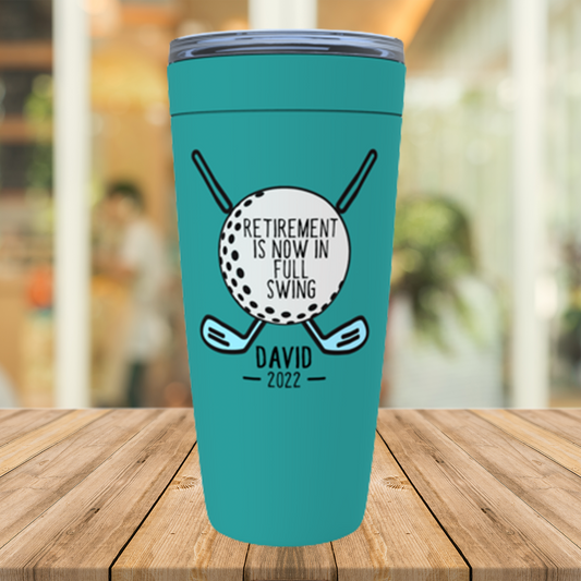 Retirement Is Now On Full Swing Tumbler - Golfer Men Retirement Personalized Gift - Custom Name And Year Cup