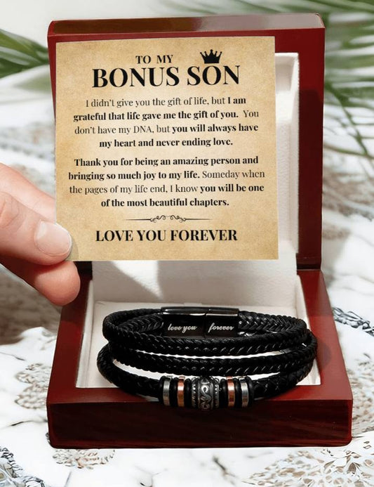 To My Bonus Son - Grateful for Gift of You - Men's Bracelet